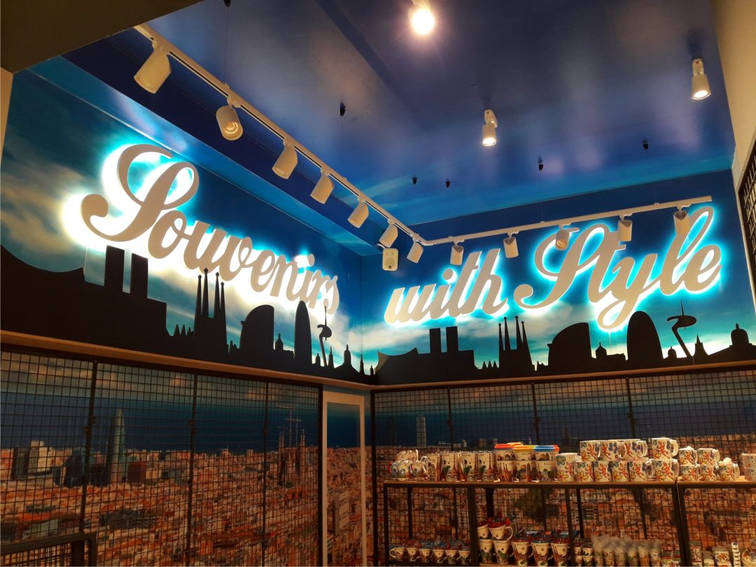 interior con letras corpóreas